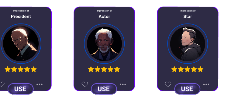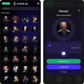 Our Free Voice Changing software can parodize anybody's voice. All the voices used in the Voice Changer are uploaded by users through the voice cloning tool and made public in the Voice Universe tab.